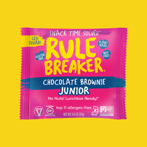 Rule Breaker Snacks Brownie Juniors are the adorable smaller siblings of our full-size brownies. They’re chewy, fudgy hunks of heaven packed with loads of chocolate chips. Individually wrapped and just 110 calories, Rule Breaker Snacks Brownie Juniors are Lunchbox Ready, great for classroom parties and perfect for the pantry.We’ve got SNACK TIME SOLVED!• 100% PLANT-BASED (VEGAN)• CERTIFIED GLUTEN-FREE• TOP 11 ALLERGEN-FREE• NUT-FREE• NO ARTIFICIAL ANYTHING• LESS SUGAR• GUILT-FREE• MADE WITH PREMIUM INGREDIENTS• FIRST INGREDIENT? CHICKPEAS!This product is a six pack of 5-count Brownie Juniors Boxes. You will receive six boxes each containing 5 individually-wrapped brownie cookies (30 total). Cookies not labeled for individual sale.NOTE: BY PLACING AN ORDER YOU ARE CERTIFYING THAT THIS ORDER IS FOR BRICK-AND-MORTAR AND AUTHORIZED NON-AMAZON RESALE ONLY AND NOT PERSONAL CONSUMPTION.