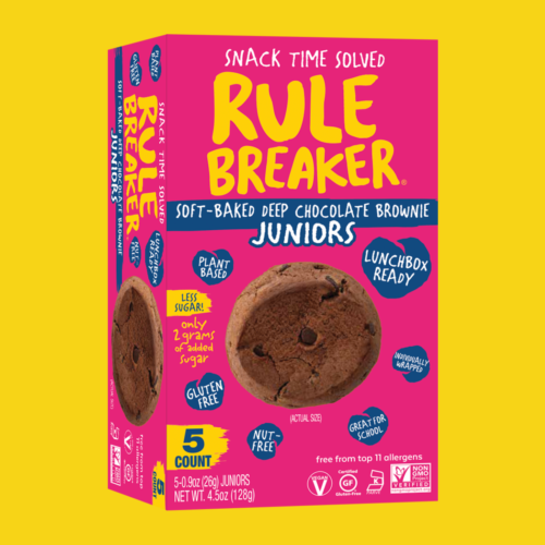 Rule Breaker Snacks Brownie Juniors are the adorable smaller siblings of our full-size brownies. They’re chewy, fudgy hunks of heaven packed with loads of chocolate chips. Individually wrapped and just 110 calories, Rule Breaker Snacks Brownie Juniors are Lunchbox Ready, great for classroom parties and perfect for the pantry.We’ve got SNACK TIME SOLVED!• 100% PLANT-BASED (VEGAN)• CERTIFIED GLUTEN-FREE• TOP 11 ALLERGEN-FREE• NUT-FREE• NO ARTIFICIAL ANYTHING• LESS SUGAR• GUILT-FREE• MADE WITH PREMIUM INGREDIENTS• FIRST INGREDIENT? CHICKPEAS!This product is a six pack of 5-count Brownie Juniors Boxes. You will receive six boxes each containing 5 individually-wrapped brownie cookies (30 total). Cookies not labeled for individual sale.NOTE: BY PLACING AN ORDER YOU ARE CERTIFYING THAT THIS ORDER IS FOR BRICK-AND-MORTAR AND AUTHORIZED NON-AMAZON RESALE ONLY AND NOT PERSONAL CONSUMPTION.