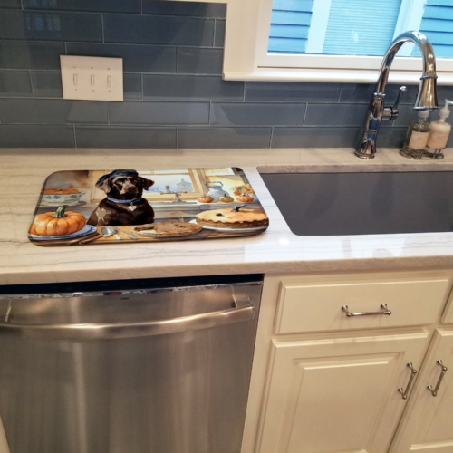 Chocolate Lab Fall Kitchen Pumpkins Dish Drying Mat