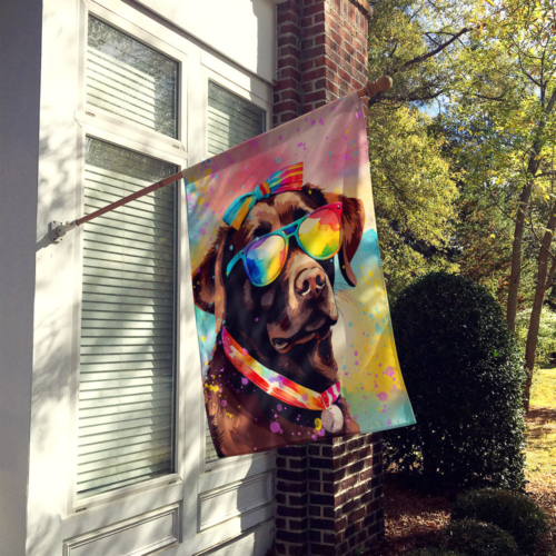 House Flag featuring breed specific Chocolate Labrador artwork. Presenting our Heavy Duty Polyester House Size Decorative Sleeve Pole Flag, a vibrant addition to enhance the aesthetic appeal of your home. This large decorative flag, measuring approximately 28 x 40 inches, offers ample coverage and visibility. Each flag is meticulously sewn and made individually, ensuring a unique piece that may slightly vary in size. It’s a sleeve pole flag, designed to fit a standard decorative flag pole effortlessly. Please note that the flag pole and bracket are not included and should be purchased separately. What sets our flag apart is its dual-sided print. The design is mirrored on both sides of the fabric, allowing for uniform visibility regardless of the angle. Printed in full color, our flag showcases vibrant hues that truly stand out. To ensure lasting vibrancy and durability, the dyes are heat-set into the fabric. This ensures your flag remains bright and captivating through various weather conditions. Elevate the look of your home with our Heavy Duty Polyester House Size Decorative Sleeve Pole Flag!