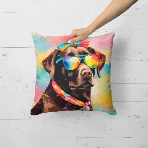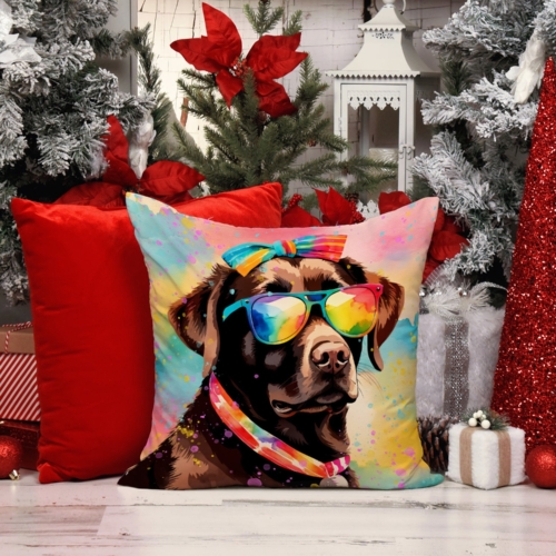 Throw Pillow featuring breed specific Chocolate Labrador artwork. Revitalize your outdoor or indoor living space with Caroline’s Treasures 18×18 Fabric Decorative Pillow. With a generously sized dimension of approximately 18 inches by 18 inches, this pillow makes a comfortable and aesthetic addition to any seating area. Made from a unique, water-resistant material developed by Caroline’s Treasures, the pillow sham is 100% polyester fabric that’s durable and ready to weather any condition. Its vibrant, full-color artwork will not fade over time as it is dyed with color-fast dyes. Whether you place it on your patio furniture, porch, veranda, or indoor couch, its soft canvas fabric ensures a cozy experience. The pillow is handcrafted in the United States, featuring a sham created from three pieces of fabric and a polyester insert for enduring shape and overstuffed comfort. Despite being robustly built to endure the outdoors, it is as soft and snug as your favorite indoor cushions. Please note, as all our pillows are handmade, sizes may vary slightly, adding to the charm of this unique decorative item.