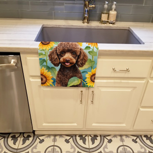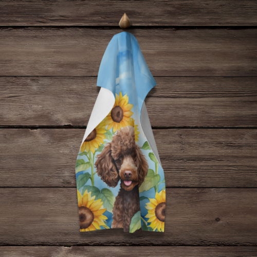 Chocolate Poodle in Sunflowers Kitchen Towel