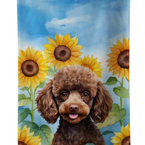 Chocolate Poodle in Sunflowers Kitchen Towel