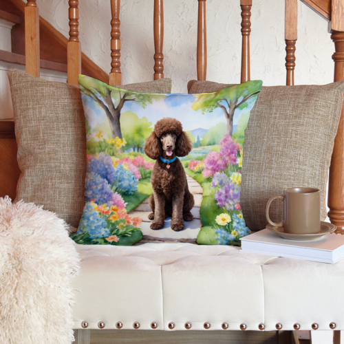 Throw Pillow featuring breed specific Poodle artwork. Add a touch of vibrancy and comfort to your outdoor seating with Caroline’s Treasures Fabric Decorative Pillow. Measuring approximately 14 inches by 14 inches, this outdoor pillow is crafted to elevate the appeal of your patio furniture, infusing it with vivid color and artistic flair. The pillow includes a 100% Polyester Fabric sham filled with a quality pillow form to provide superior comfort. Innovatively made from our brand new material, specifically woven for its water resistance, this pillow is designed for durability. The soft canvas fabric offers versatility in use, fit for your indoor couch or your outdoor patio, porch, or veranda. The fabric is dyed with colorfast dyes built for resilience against weather conditions, ensuring the pillow retains its beauty over time. Constructed by sewing three fabric pieces to create a sham, the polyester insert is then nestled inside to form the pillow, resulting in an overstuffed pillow that maintains its shape. Both the sham and the pillow insert are proudly made in the United States. As the pillows are handcrafted, there may be minor variations in size, further enhancing their unique charm. Experience comfort in style with Caroline’s Treasures Fabric Decorative Pillow.