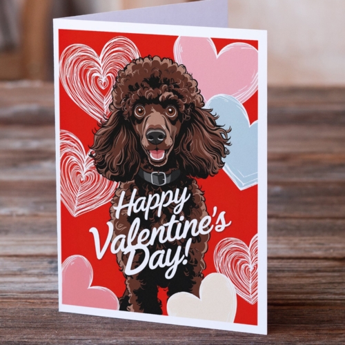 Chocolate Standard Poodle Happy Valentine’s Day Greeting Cards Pack of 8