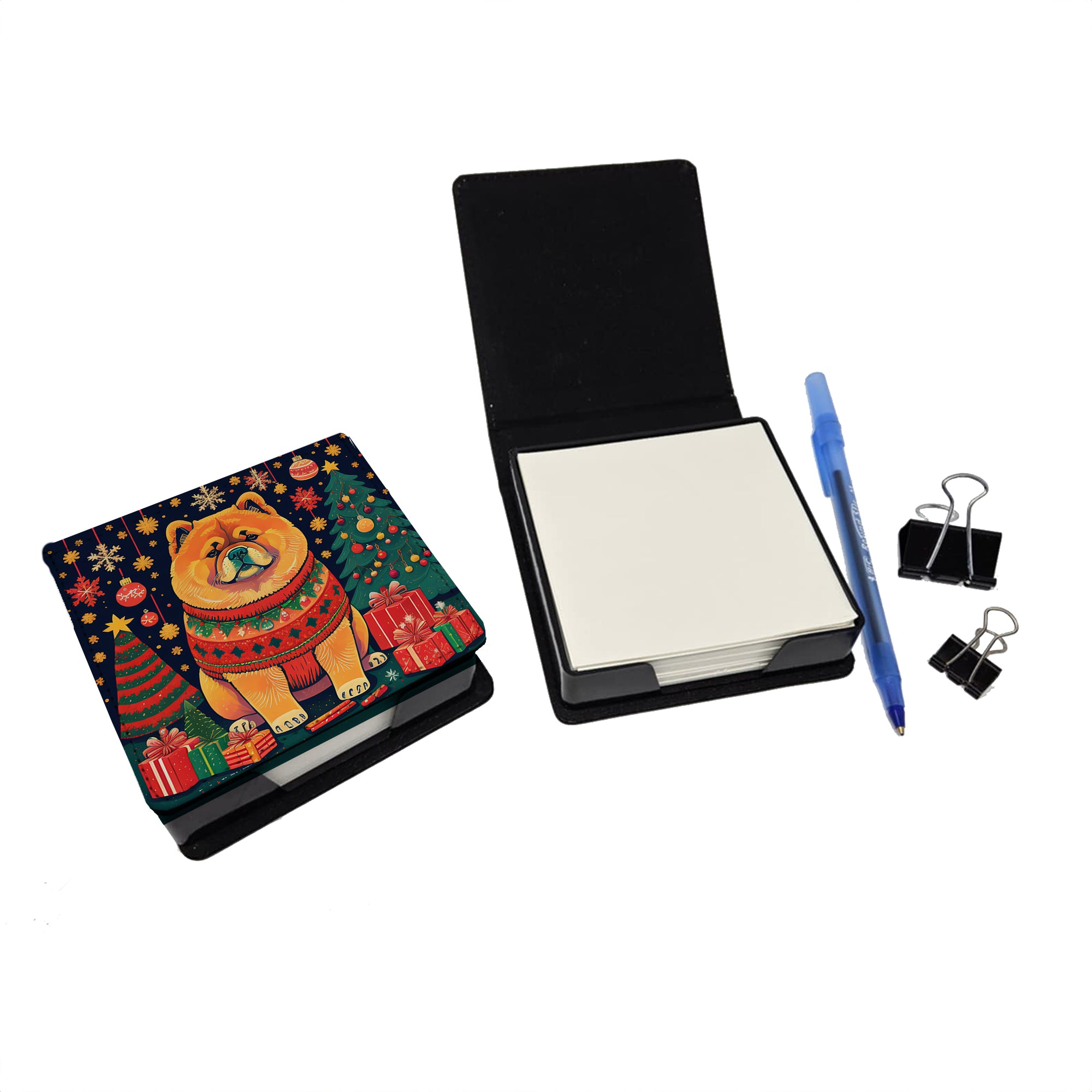 PU Leather Note Paper Holder featuring breed specific Chow Chow artwork. Celebrate Christmas with this Christmas Note Paper Holder. Elevate your workspace with this PU Leather Note Paper Holder, crafted to resemble luxurious leather without the use of animal products. Made from durable synthetic PU leather, it offers both a premium look and eco-friendly appeal. This note holder, compactly sized at 4.25 x 4.25 x 1.25 inches, includes about 160 sheets of 3.75 x 3.75-inch note paper—ideal for quick notes and reminders. An exclusive artist-designed cover makes each holder uniquely vibrant, adding a splash of color and personality to any desk or office. The discrete design keeps note paper hidden, maintaining a neat and organized workspace. Perfect as a gift or for personal use, this stylish holder is refillable with standard paper, ensuring long-lasting utility. A must-have for anyone seeking a sophisticated, artful touch to their workspace while supporting animal-friendly products. Add style, organization, and creativity to your everyday routine with this elegant note paper holder.