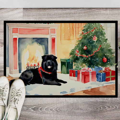 Doormat featuring breed specific Chow Chow artwork. Celebrate Christmas with this Christmas Doormat. Welcome your guests in style with our Artwork Door Mat, designed to withstand almost any weather condition. This mat, measuring approximately 24 by 36 inches, is held together by durable black binding tape. Its top layer, composed of polyester felt, is dyed with the eye-catching image you see on the mat. A few layers below provide the mat with stability, while its rubber bottom is stamped to help prevent slipping and ensures safety. Our mat works wonderfully as both an indoor or outdoor door mat. For cleaning, simply hose it off with water or use a power washer – no need for any cleaner that produces suds. Avoid scrubbing with a brush, instead, opt for the vacuum on floor setting. Designed manufactured and printed in the USA, this mat is a perfect addition to your porch, outdoor kitchen, entryway, or any indoor space. Its unique design makes it a charming decorative rug that greets your guests and adds a stylish touch to your home decor.