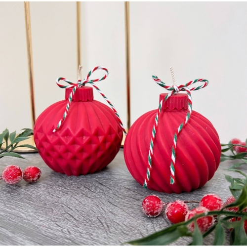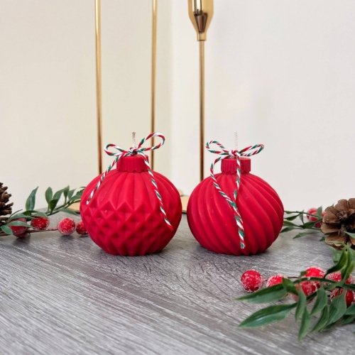 Our red Christmas bauble candles feature two beautiful designs: a swirly ridged pattern and a geometric pinecone design. Both styles feature a cap detail, expertly crafted to recreate the shape and texture of a real bauble.