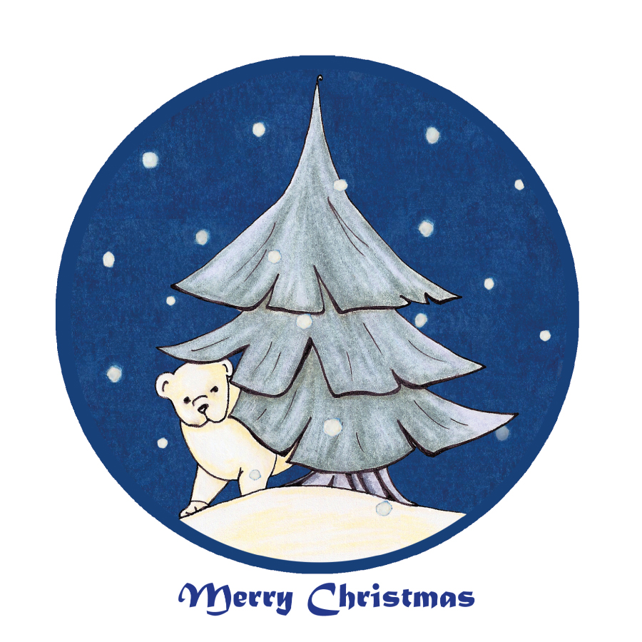 Christmas Card – Polar Bear Behind Tree