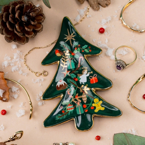 Beautiful and Practical | This is a must have accessory for a dresser, side board, bedside table… keep all of your rings and dainty jewellery safe in one place on this lovely Christmas Tree trinket dish.Great Quality | Made from 100% porcelain, use it year after year at Christmas to keep all of your small and delicate items safe in one place.Care Instructions | We recommend wiping clean with a clean cloth to ensure the trinket dish stays clean and sparkling!Dimensions | Height: 7cm x Width: 11cm x Depth: 1cmDesigned in Cornwall | From the Joy To The World collection by CGB Giftware | Item No: GB05771