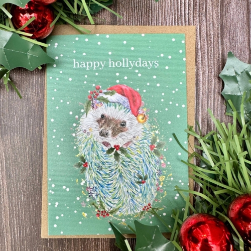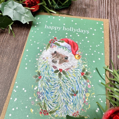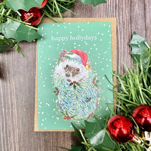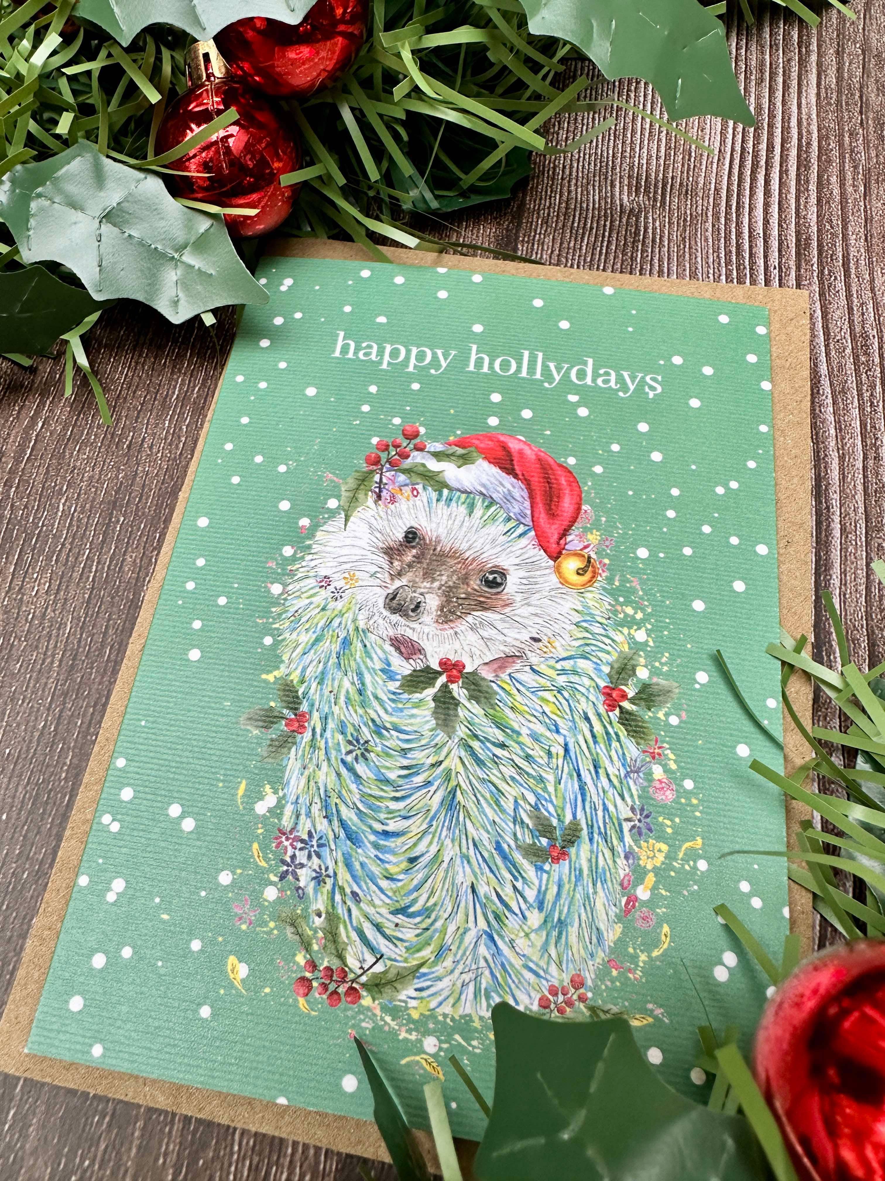 Christmas Hedgehog | Eco Friendly Art Card cute colourful