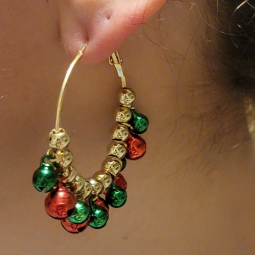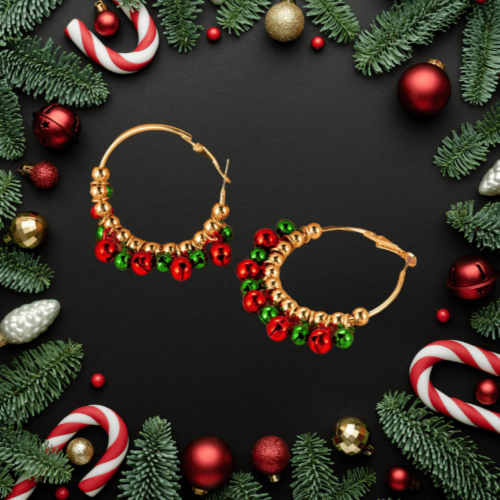 ‘Tis the season for jingly-jangly joy! Deck out your lobes with these Christmas Jingle Hoop Earrings. A pair of 2×2″ merry-n-bright gold hoops adorned with green and red Christmas bells. A festive addition sure to make the season shine.