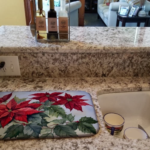 Celebrate Christmas with this Christmas Dish Drying Mat. Say goodbye to messy countertops and soggy dish towels with our innovative dish drying mat. Our high-quality dish drying pad is designed to keep your countertops dry while offering a stylish and efficient solution. Whether you’re air drying dishes, glasses, stemware, silverware, pots, pans, bottles, or even fruits and vegetables, our dish mat is the perfect choice. The 14 inches x 22 inches size fits most counters and dish drying racks, and the non-slip design ensures stability. Made with water-absorbent polyester and a polyurethane foam insert, our dish drying mat is not only functional but also durable. It’s machine washable and printed in the USA for long-lasting use. The beautiful artwork adds flair to your kitchen decor, making it a perfect housewarming gift or present for any occasion. Upgrade your kitchen experience with our absorbent and versatile dish drying mat.