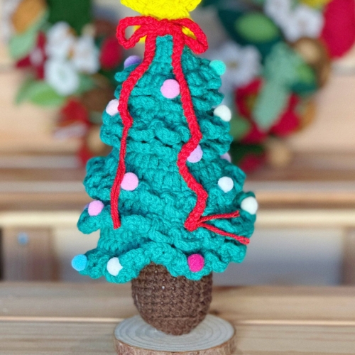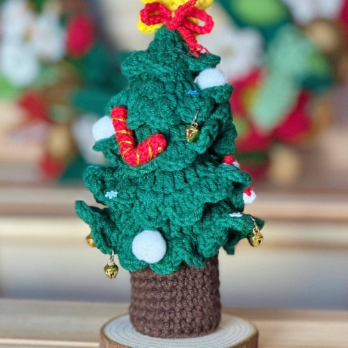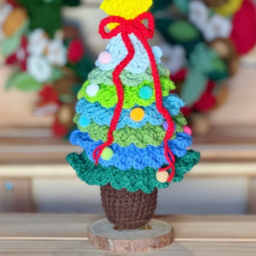Bring the joy of the holiday season to your home with our Handmade Crocheted Christmas Tree Decorations! Celebrate the magic of Christmas with our exquisitely crafted, whimsical collection of crocheted tree decorations. Designed with love and meticulous attention to detail, each piece in this festive collection is a testament to the timeless art of crochet, making it the perfect addition to your holiday decor or a cherished gift for someone special. Product Features: Unique Handmade Craftsmanship: Each decoration is carefully hand-crocheted, ensuring a one-of-a-kind charm that you won’t find in mass-produced ornaments. Delightful Designs: Our collection features a colorful array of Christmas trees topped with a bright star, as well as adorable Santa hats to bring a dash of cheer to your space. Quality Materials: Made with soft, durable yarn, these decorations promise to be a long-lasting part of your holiday traditions. Vibrant Colors & Textures: With a palette of joyful hues and varied textures, these pieces catch the eye and offer a tactile experience that is both comforting and enchanting. Perfect Size: Designed to fit perfectly on mantelpieces, desks, shelves, or as part of a festive centerpiece, these decorations stand independently on wooden bases. Eco-Friendly: The wooden bases are crafted from natural, sustainably sourced wood, adding an earth-friendly touch to your holiday celebrations. Dimensions: Medium Trees: Approx. 18cm in height X 8cm in width. Large Trees: Approx. 25cm in height X 10cm in width. Decorative Accents: Sparkling Embellishments: Each tree is adorned with pearl-like beads and colorful pompoms, simulating baubles and lights.