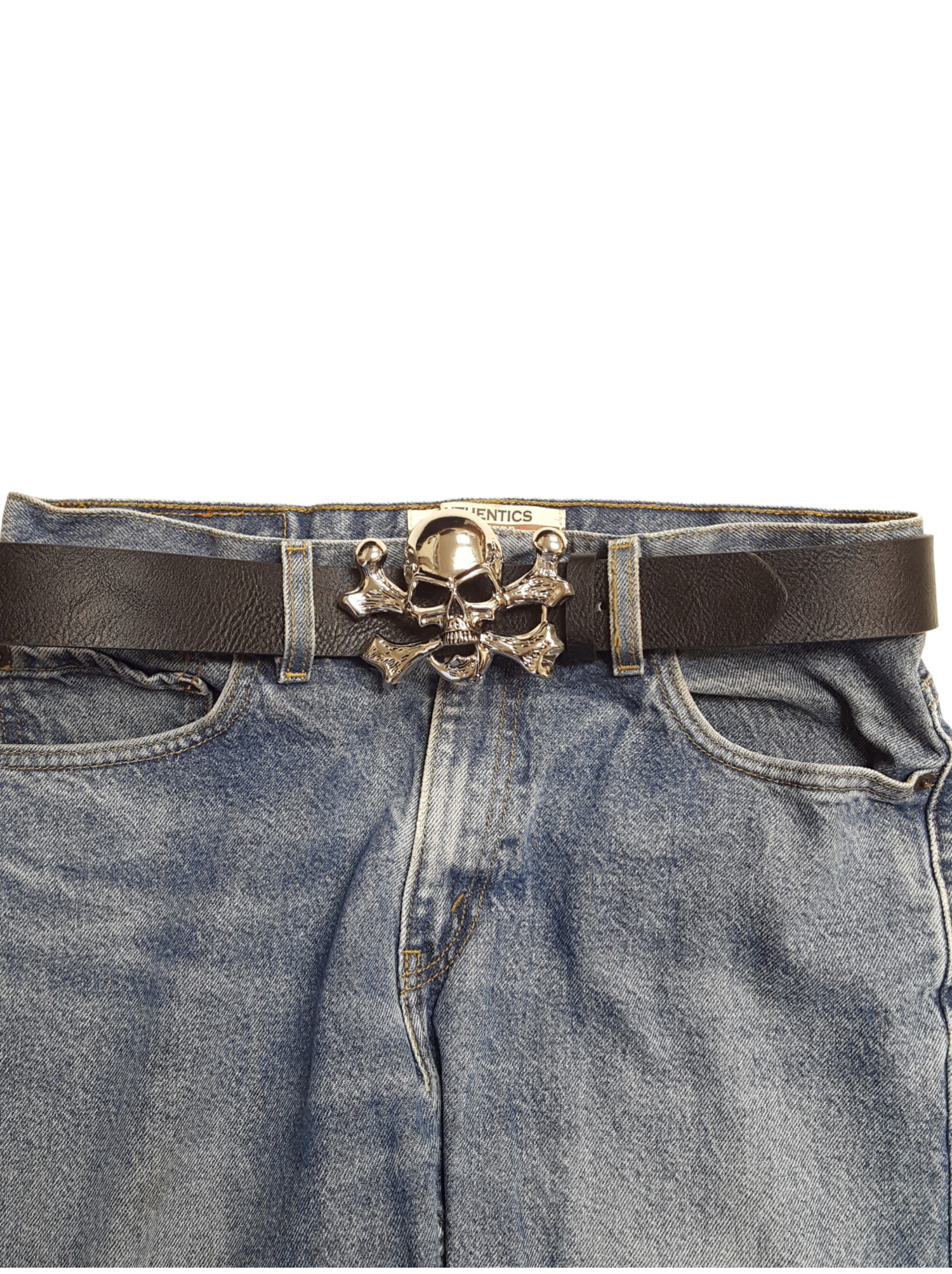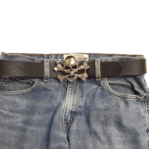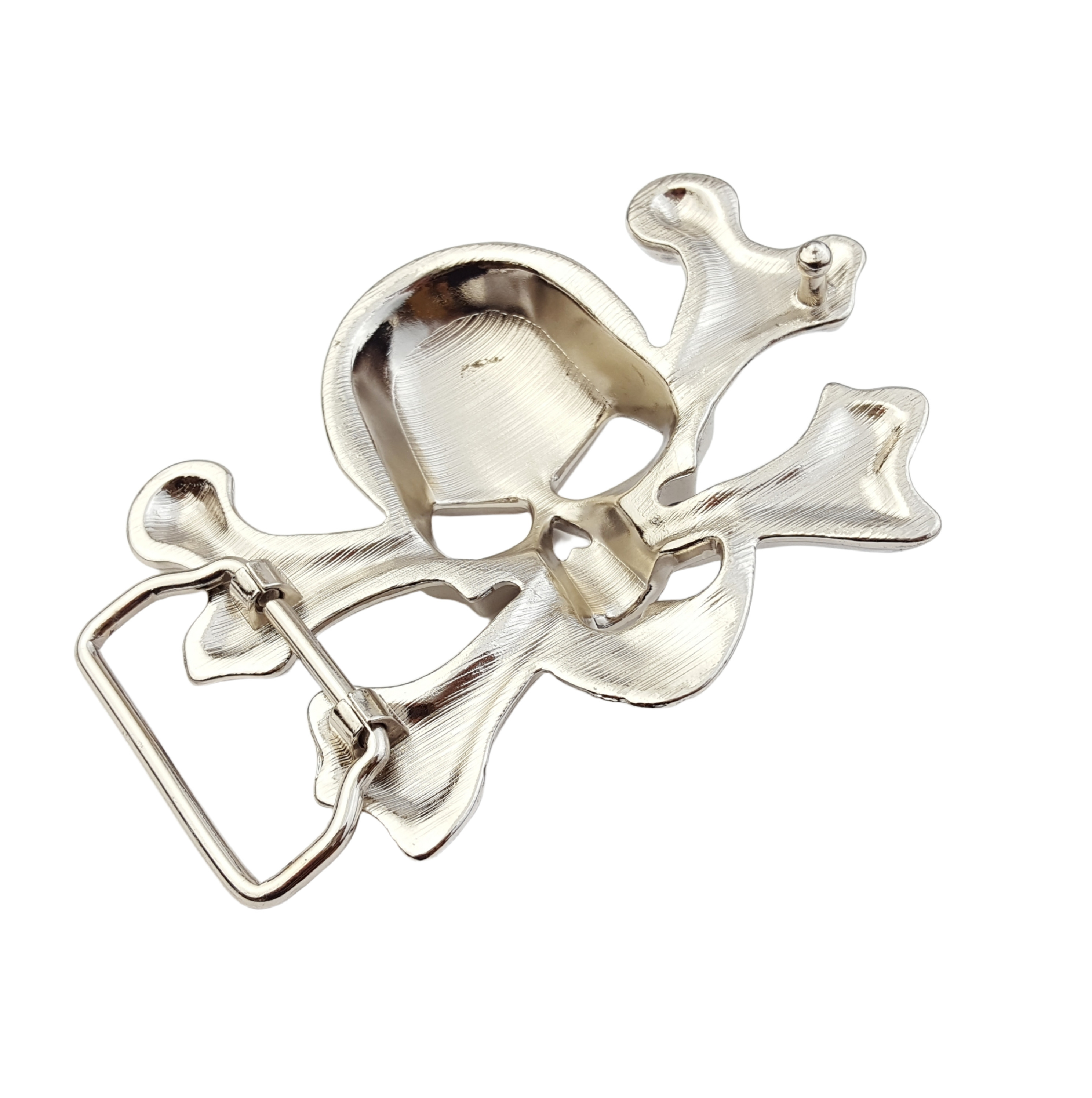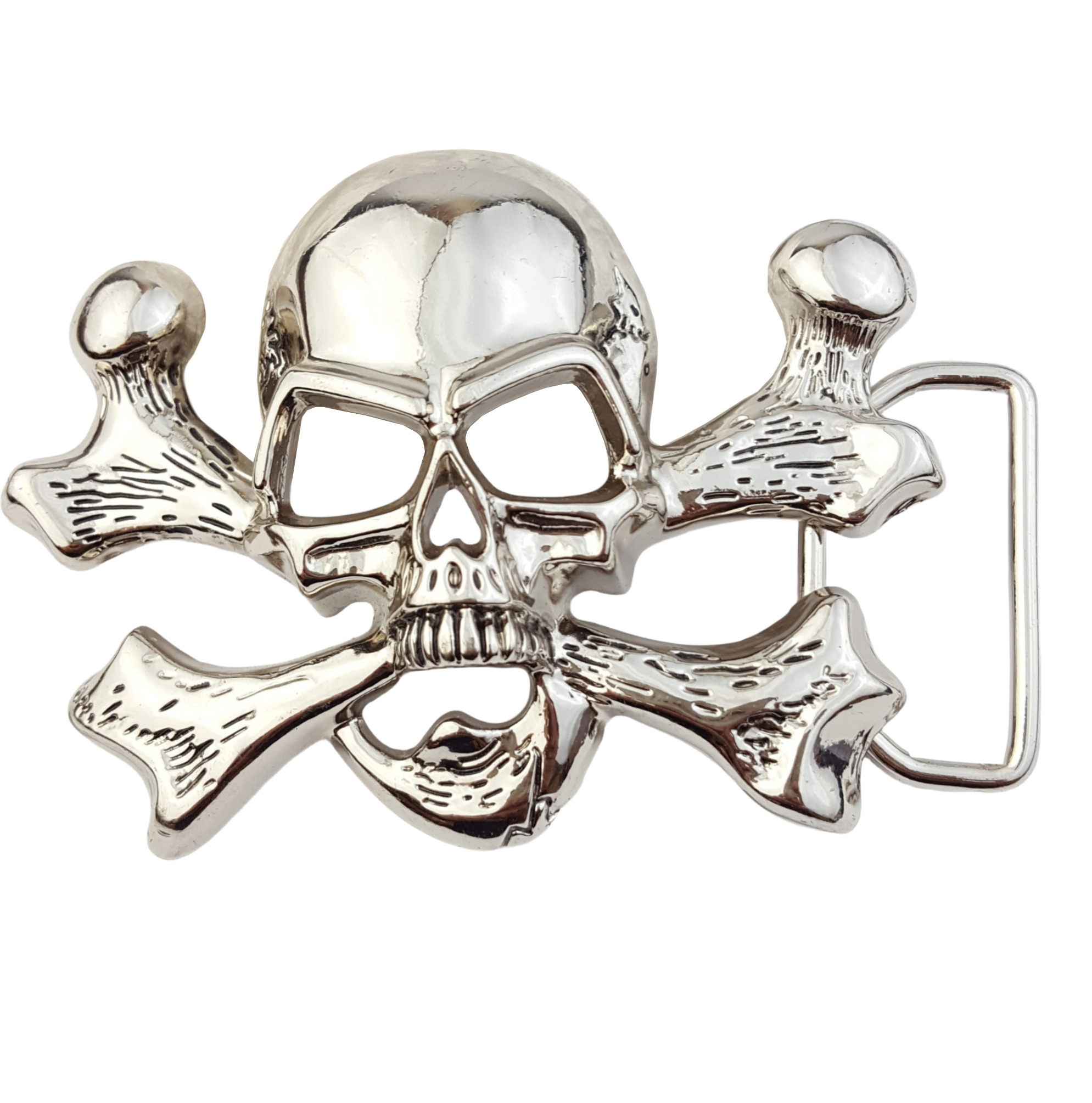 Buckle in Skull and Cross bone design, polished to shiny silver.