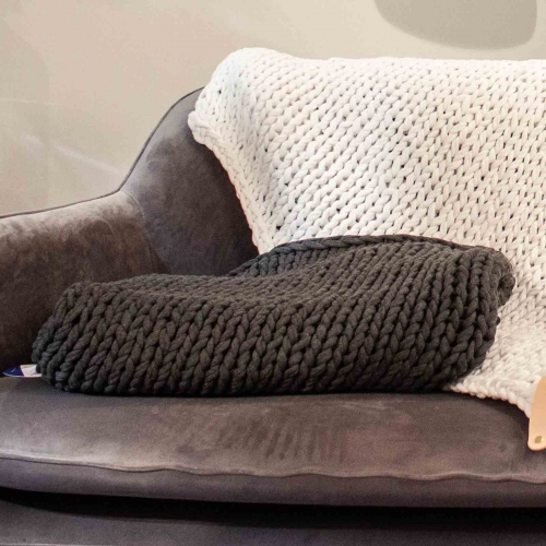 The Juna knit blankets are particularly tightly knitted, giving them their characteristic weight, which many people perceive as soothing. The trend “heavy weight blanket” promotes relaxation and well-being. An absolute must-have for every season.