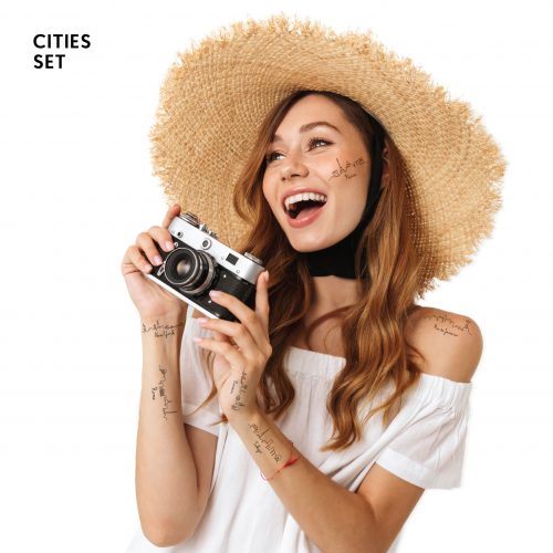 The journeys are calling! London, Paris, Rome, New York, Tokyo and Rio in one-line design temporary tattoos are made for your awesome travel photos.