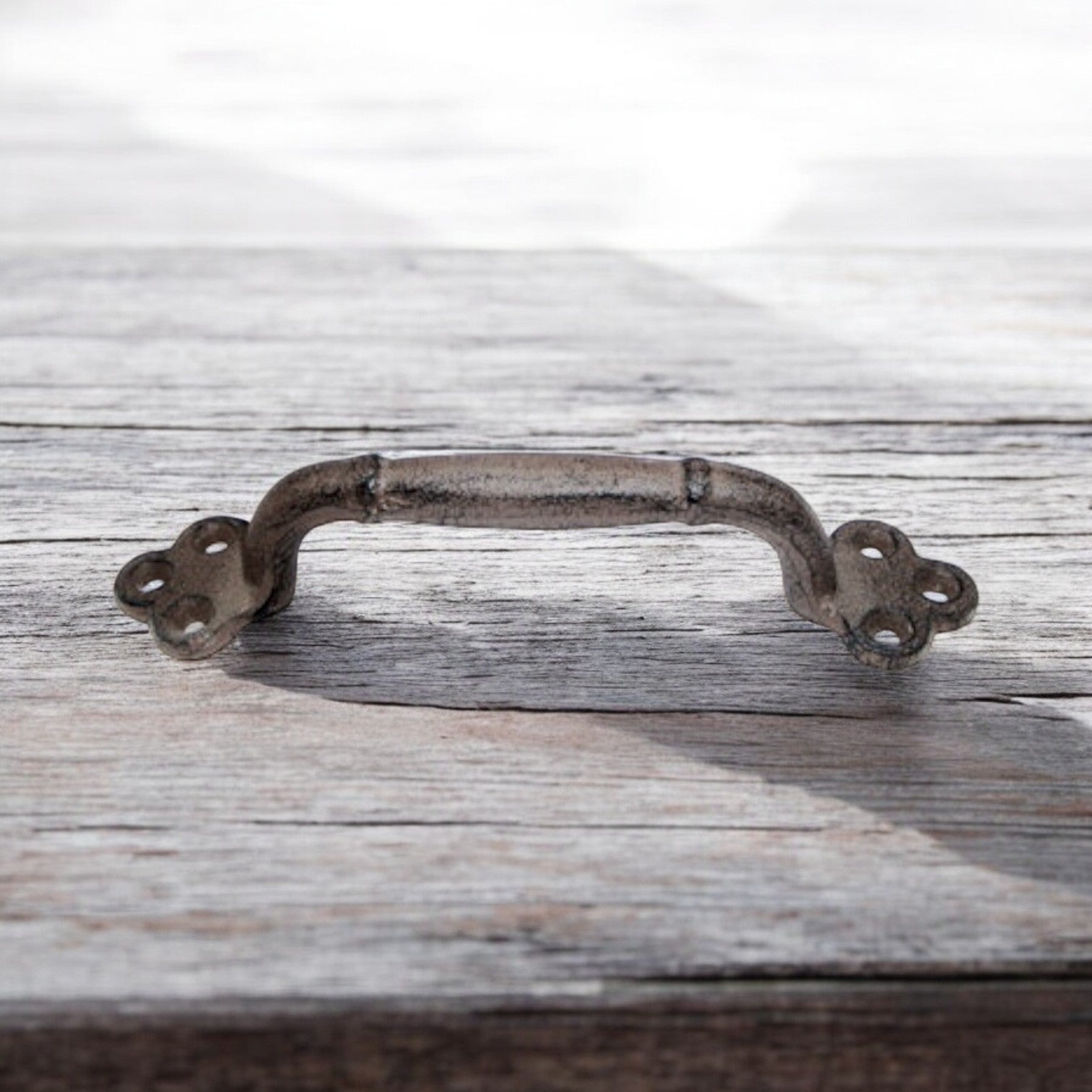 Elevate furniture quickly with our Cast Iron Drawer Pull. Showcasing a classic handle shape and a touch of old-world charm, this pull suits both rustic anddustrial decors. Robust cast iron construction stands up to daily use, while its subtle detailing adds character to dressers, cabinets, or desks. Replace worn-out hardware or customize new pieces, and let the vintage-inspired appeal of cast iron transform your space.