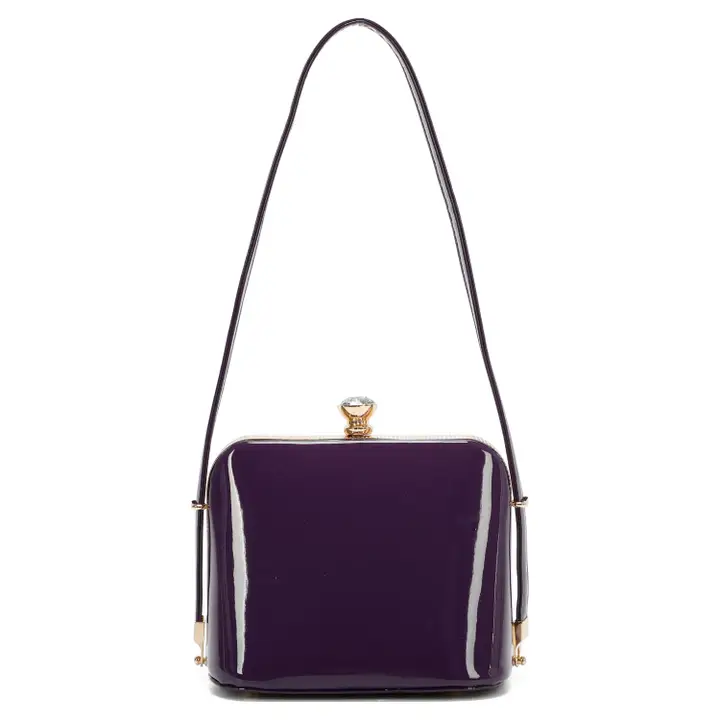 Classic Diamante Clasp Opening Shoulder Bag Patent Bag-A9120 Purple