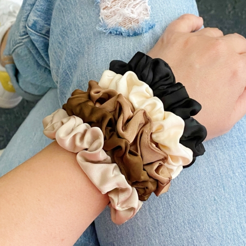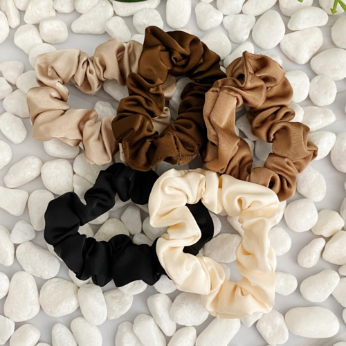 This Classic Satin Scrunch Set of 5 is the perfect everyday hair accessory. Featuring simple and understated scrunches in neutral colors, the soft satin fabric and slim body are designed for simple and yet stylish hair management. Each set presented in a clear cello cute case and branded with Ellison + Young logo sticker. Dimensions: approximately 3.5″ x 5.5″ x 1.2″ Made in China