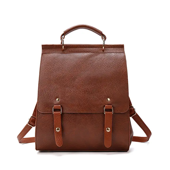 Classic Two-toned Flap Over Backpack bag- 9356 Brown