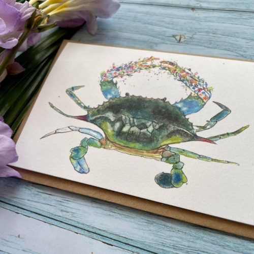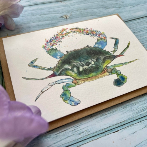 Claude The Crab Eco Card | Blank Seaside Colourful Art | Friend | Eco Friendly Card | Colourful | Blank | Nature | Blank | Occasion | Greetings | Watercolour | Jen Winnett Art