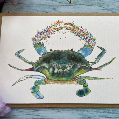 Claude The Crab Eco Card | Blank Seaside Colourful Art | Friend | Eco Friendly Card | Colourful | Blank | Nature | Blank | Occasion | Greetings | Watercolour | Jen Winnett Art