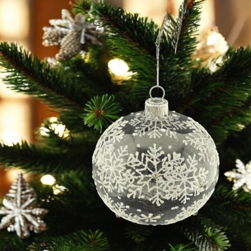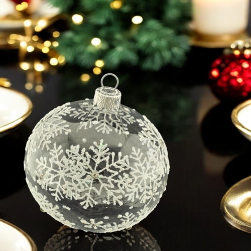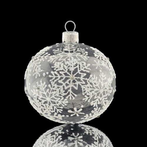 Old world craftsmanship comes to life in these elegant, hand-made ornaments. Blown glass ornaments are a traditional staple world-wide so not only would they look great on your tree, they also make for great gifts!!! Each of our blown glass pieces is hand painted with skill, precision and love. You will notice rich white snowflakes on a clear bauble. Approximately 3.3″ in size. This is a hand made product so please allow for slight variance. Each piece is unique, just like you! Made in Ukraine Each ornament is individually boxed in a decorative display box Please note that the videos in my listings probably give the best indication of the actual product as I am a terrible photographer and my space is nowhere near professional-grade 🙂