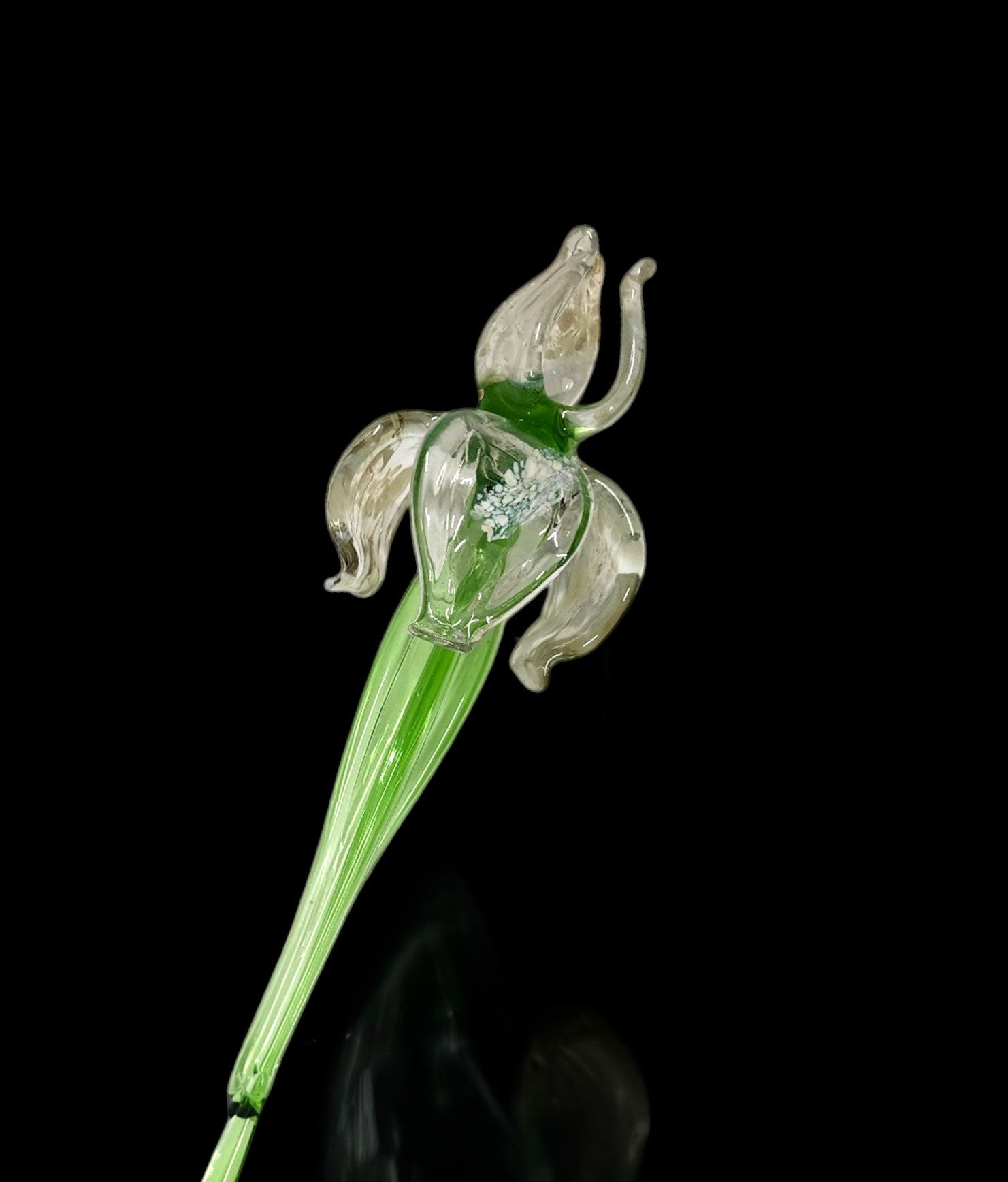Clear Glass Iris, Handcrafted Glass Flower, Hand Made In Ukraine Using Murano Quality Glass, Great Gift For Flower Lovers, 12 Inch Iris
