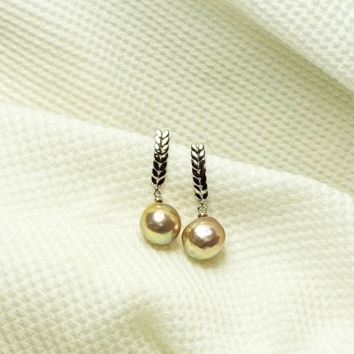 Our fresh water cultured pearl earrings features a lovely metallic pearl suspended from an elegant sterling silver leaf design truly made for the Goddess within all of us. product detailsProduct Type: EarringsProduct Measurements: 1.55″X 0.84″Pearl Type: Fresh Water Baroque PearlPearl Size: 11mmPearl Color: MetallicMetal Type: S925 Sterling SilverStone Type: N/A Freshwater Cultured PearlsFreshwater pearls generally have a bodycolor of white, cream, yellow, orange, pink or purple, these subtle pastel colors are unique to the freshwater variety. In addition, they often have an overtone of pink, blue and green, and can sometimes display beautiful orient, especially in the case of irregular baroque shapes. Color terms such as “apricot”, “peach”, “lavender” are often used to vividly describe these gems. Pearl Care & Additional Information Matching Necklace Matching Ring