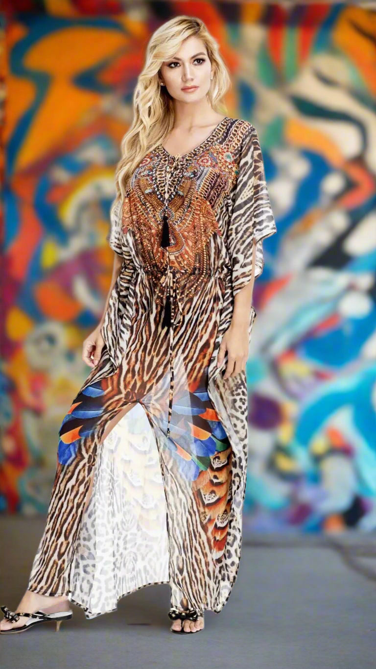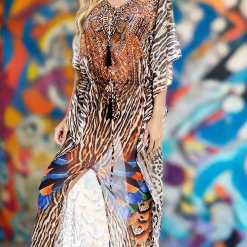 Women’s Long Caftan ideal for both sunbathing and casual outings Kaftans work perfectly as beachwear Cover-Ups, carelessly-yet-carefully strewn over swimwear. This is an easy breezy throw on and go style dress that is perfect for your beach holiday. The long length and relaxed fit give a flowy look. Check out the wholesale collection at La Moda. Relaxed Fit Long Kaftan, Swimsuit Cover Up Beachwear, Resort Wear, Cruise Front Slit 100% Polyester Printed / Multi Color Size: One Size Washing Instruction: Hand Wash with Cold Water, Tumble Dry, Do not Iron Pack Details:4 Pcs