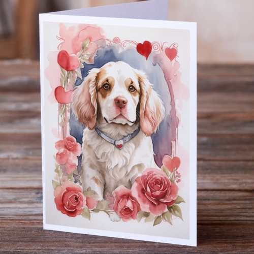 Clumber Spaniel Valentine Roses Greeting Cards Pack of 8
