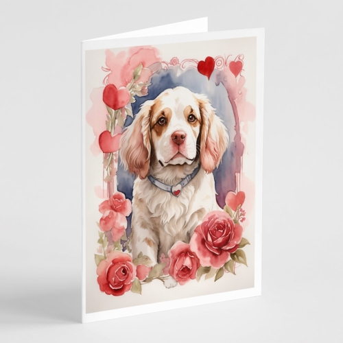 Clumber Spaniel Valentine Roses Greeting Cards Pack of 8