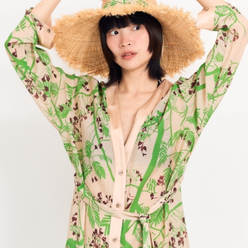 “Coco Dream” Straw Hat with Ribbon Tie – The ultimate sun hat for summer escapes! This wide brim straw hat features an adjustable straw hat with string (elegant green ribbon) for a secure fit. The lush ribbon complements timeless khaki straw, offering UPF 50+ protection in breezy, breathable style. Perfect for beaches, brunches, and beyond. Product Description: Hat: 100% raffia; ribbon tie: 82% viscose, 18% cotton Digital printed with floral patterns on ribbon tie inspired byCartagena 2 colors to choose: Pink & Green and Black & Orange Circumference: 56-58cm/Height: 12cm/Brim: 14cm *Due to the handmade nature of the hat, the measurements may vary slightly.
