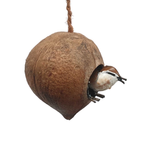 BRING THE ISLAND VIBES TO THE HOME – This tropical island-inspired bird nest adds an exotic vibe to any place, blending into the garden. MULTI-PURPOSE – A multi-function toy for many birds. Can be used as a nest, swing, feeder, play centre and much more. NATURAL PRODUCT – Made from a completely natural coconut husk, making this a safe, sustainable and non-toxic environment for birds. HANDMADE PRODUCT – Every item handmade in ethical condition and harmony with nature, weaved with the traditional manual techniques. EASY TO INSTALL – The installation is convenient and quick, you can hang it anywhere you want. This Coconut Nest is made from discarded coconut shells. Natural, sustainable materials. A great addition to the bird lover’s home. If you are an avid bird watcher, this nest for birds will help make your home welcoming to all beautiful creatures. Perfect for small and medium-sized birds. Observe them from the comfort of your home. They may even break into a song just for you!