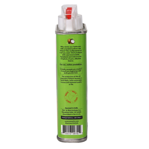 NEW LAUNCH!!! A lightweight, fast-absorbing coconut oil for nourishing, soothing, and restoring hydration to hair, skin, and nails—without the greasy feel. Infused with the naturally fresh, tropical scent of pure coconut. BENEFITS: For Skin That’s Been Through Things: Post-shower, anoint generously to treat your whole body—every elbow, knee, and forgotten corner—like the temple it occasionally forgets it is. Your Hair’s Next Character Arc: One drop and your frizz gets written out of the script. Shine takes the lead—and frankly, it’s award-worthy. Little Fixes, Big Feels: From chapped lips to sunburnt shoulders, this coconut wonder is your Swiss Army Knife of skincare—think Ayurvedic auntie meets beauty editor. To Gently Erase the Day: Stubborn mascara? Gone. Questionable afternoon texts? Also wiped clean (emotionally speaking). Rich in: Lauric Acid, Vitamin E, Fatty Acids, Antioxidants Somewhere between the Bay of Bengal and a slow-moving oxcart carrying fresh coconuts lies Tamil Nadu—where the sun always seems to be casting the perfect golden hue and time politely slows down. It’s here where our sweet coconut oil comes to life. RICH IN: Lauric acid Vitamin E Fatty acids Antioxidants Somewhere between the Bay of Bengal and a slow-moving oxcart carrying fresh coconuts lies Tamil Nadu—where the sun always seems to be casting the perfect golden hue and time politely slows down. It’s here where our sweet coconut oil comes to life. FUN FACT: In India, coconuts are cracked to mark new beginnings and invite good fortune. Experience what happens when nature decides to show off—WOO Coconut Oil by Beautyologie is like a spa day in a coconut grove where your skin, hair, & nails sip chai, swap stories, and emerge visibly more relaxed. ASK YOURSELF THIS: Why clutter your bathroom with a hundred potions and lotions? This multipurpose oil is all you need. Ditch products with unpronounceable ingredients and embrace the simplicity of pure, effective beauty. One can. Endless possibilities. Our sustainable, recyclable tin cans are TSA-friendly, leak-proof and fun to use! 3.4 oz (100 ml) TRANSPARENT SUPPLY CHAIN: The production of this oil empowers Pollachi farmers in Tamil Nadu, India sustainable income and improved quality of life. Sourced in India with love.