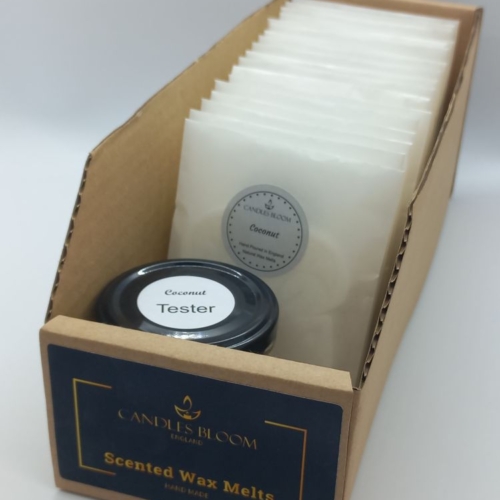 A free wax melt sample as a tester will be provided in a glass jar on the first order. All repeat orders will contain a wax melt sample but not glass jar and only be available on request.