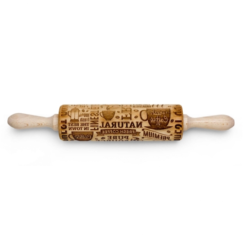 The perfect companion for a nice cuppa – a coffee themed rolling pin to make some tasty biscuits to go with it.