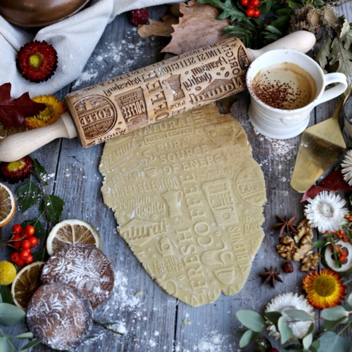 The perfect companion for a nice cuppa – a coffee themed rolling pin to make some tasty biscuits to go with it.