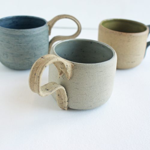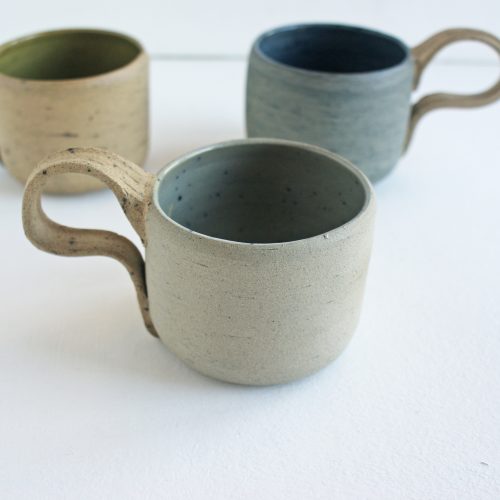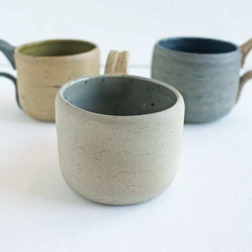 Fired to 1200ᵒC, the cool and gentle tones of this cup reflect how Spring moves us from pale Winter to Summer. The soothing grey exterior carries the first hints of blue sky; inside the colour is intensified by the glaze and speckled with bursts of blue. The soft, neutral shades of the handle compliment the overall placidity of the cup.