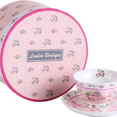 Brand: London BoutiqueColor: Rose Pink 1pc SetFeatures: 1pc set include 1 cup and 1 saucer, 2pcs set include 2 cups and 2 saucers Rose Lavender flower cup and saucers in Beautiful gift box, Gift box cups ans saucers match flower print microwave safe, but not suitable for dish washer Capacity of the cup: 220ml Sizes:Cup Width10 x Depth 7cm, Saucer: Diameter 15cm Binding: Kitchen & HomePublisher: London BoutiqueRelease Date: 27-03-2018Details: This beautiful bone china mug in a gift box, it is perfect gift present. It comes in 1 cup set or 2 cups set. Rose Lavender flower cup and saucers in Beautiful gift box, Gift box cups ans saucers match flower print. microwave safe, but not suitable for dish washerPackage Dimensions: 9.1 x 7.9 x 4.3 inches