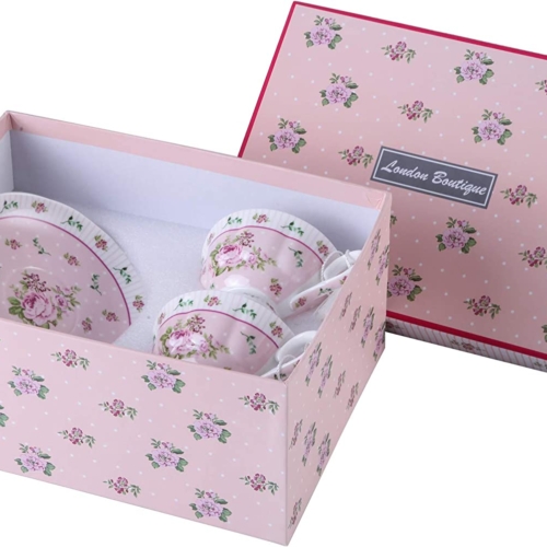 Brand: London BoutiqueColor: Rose Pink 2pc SetFeatures: 1pc set include 1 cup and 1 saucer, 2pcs set include 2 cups and 2 saucers Rose Lavender flower cup and saucers in Beautiful gift box, Gift box cups ans saucers match flower print microwave safe, but not suitable for dish washer Capacity of the cup: 220ml Sizes:Cup Width10 x Depth 7cm, Saucer: Diameter 15cm Binding: Kitchen & HomePublisher: London BoutiqueRelease Date: 27-03-2018Details: This beautiful bone china mug in a gift box, it is perfect gift present. It comes in 1 cup set or 2 cups set. Rose Lavender flower cup and saucers in Beautiful gift box, Gift box cups ans saucers match flower print. microwave safe, but not suitable for dish washerPackage Dimensions: 13.4 x 8.4 x 5.1 inches