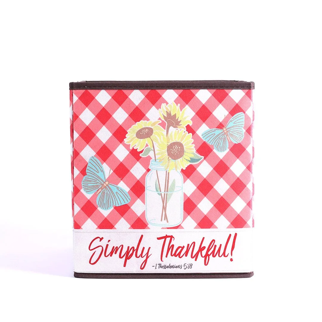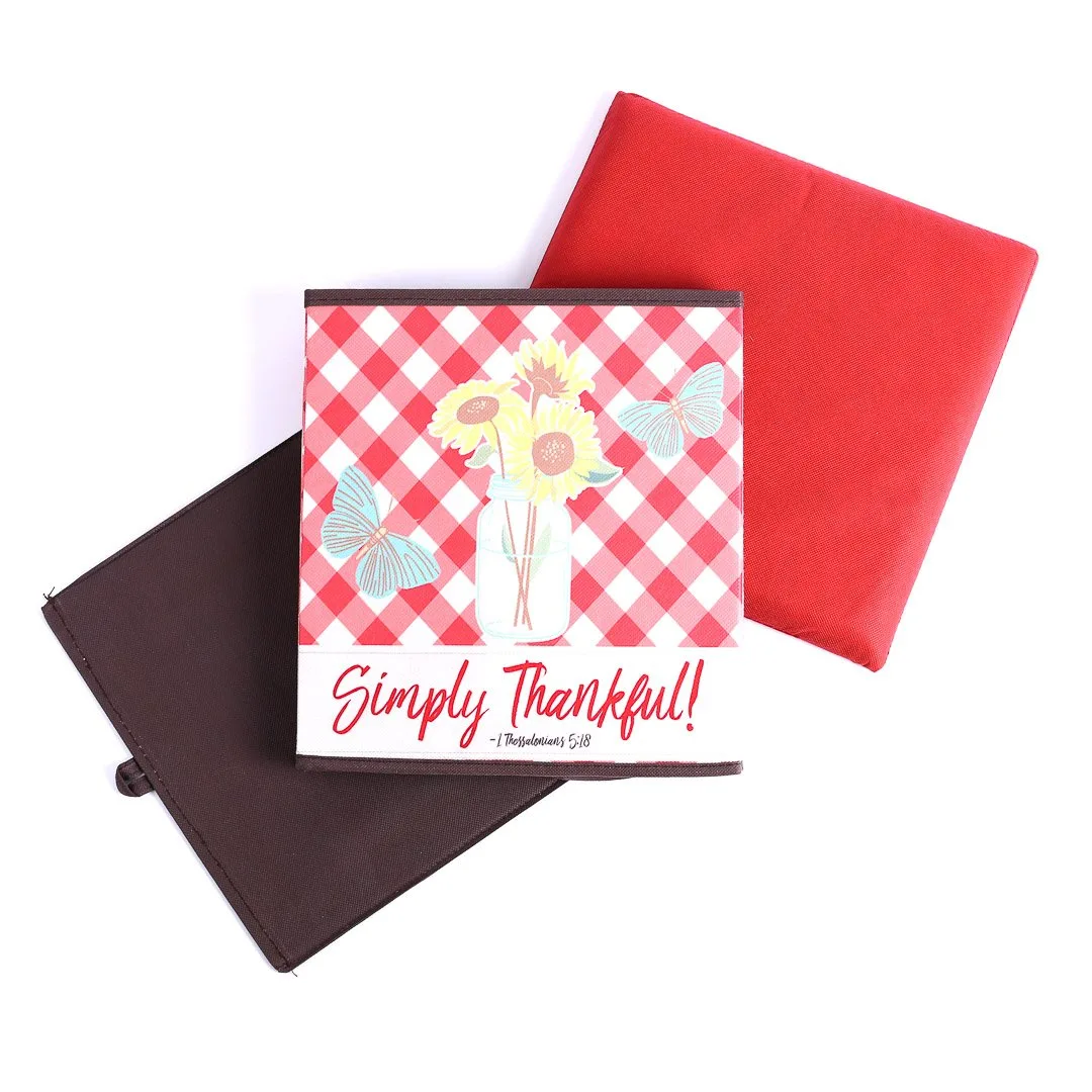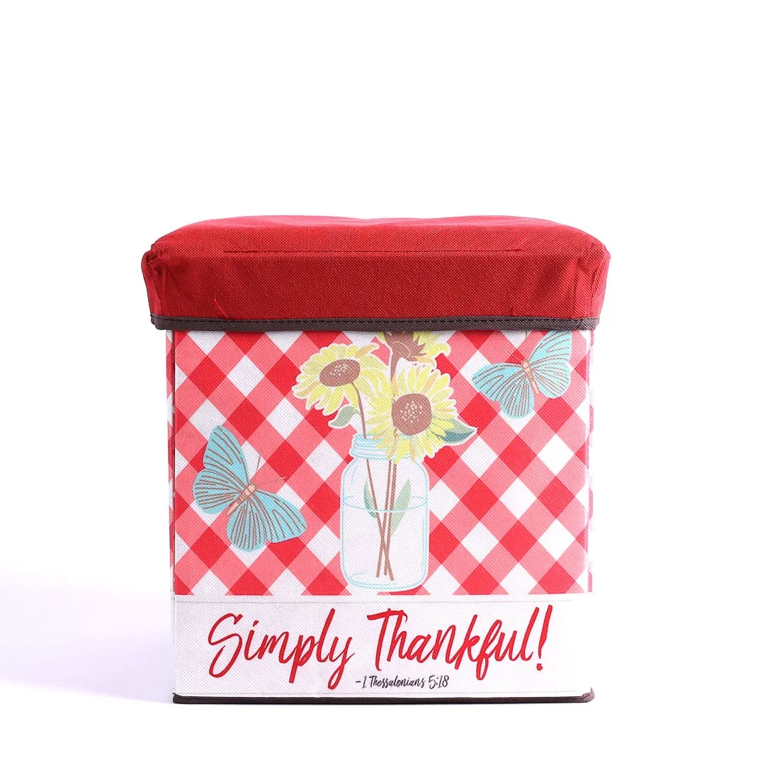 This 12-inch cube ottoman is the perfect blend of functionality and faith-inspired design, making it an ideal addition to any room in your home. Itís designed with sturdy sides covered in soft cotton fabric, offering both durability and a gentle texture. The unique design features a vibrant and cheerful checkerboard pattern, combining pink, red, and white colors with beautiful floral and butterfly motifs, along with the uplifting text Simply Thankful. This piece brings a sense of joy and gratitude to your living space, creating an inviting atmosphere wherever itís placed.