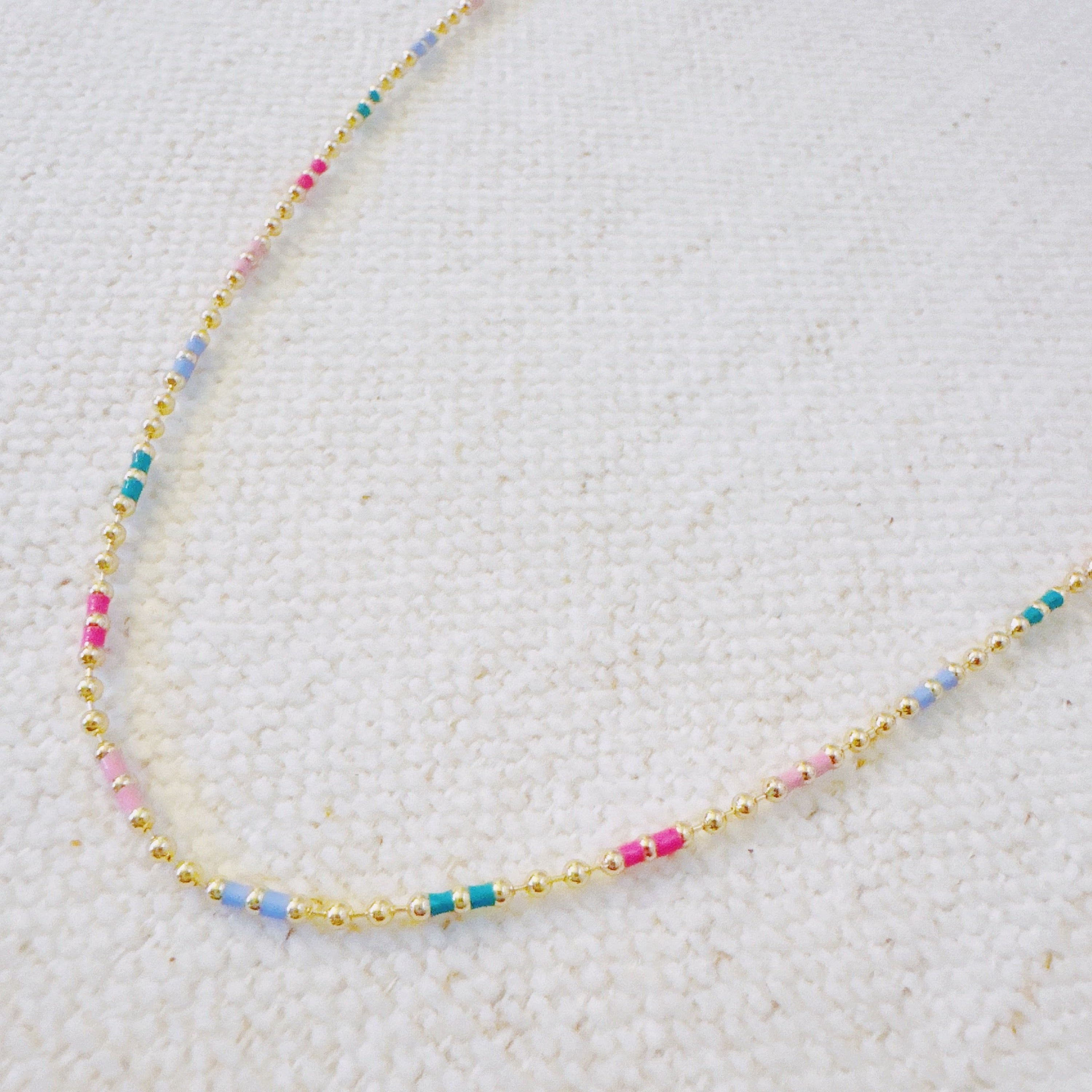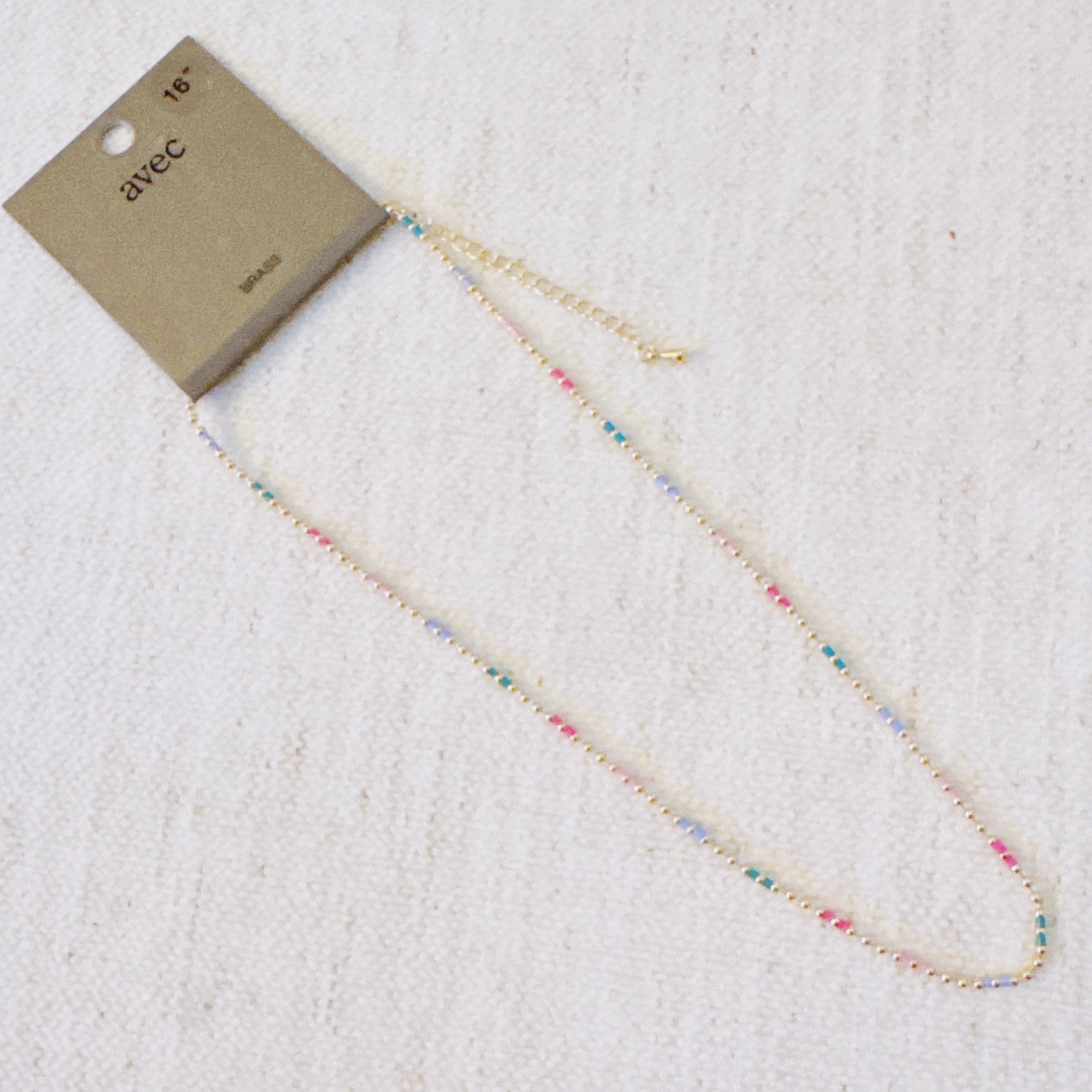 Add a playful splash to your jewelry lineup with the Color Pop Ball Chain Necklace. Featuring a vibrant mix of colorful beads along a classic ball chain, this necklace brings bold energy and fun-loving style to any outfit—perfect for stacking or wearing solo. ✔️ Bold & Bright – Pops of color for instant joy✔️ Layer-Friendly – Great for mixing with your favorite chains✔️ Everyday Fun – A cheerful twist on a classic silhouette Dimensions: Approx. 16″ w/ 2″ extender Materials: beads, gold-tone ball chainImported