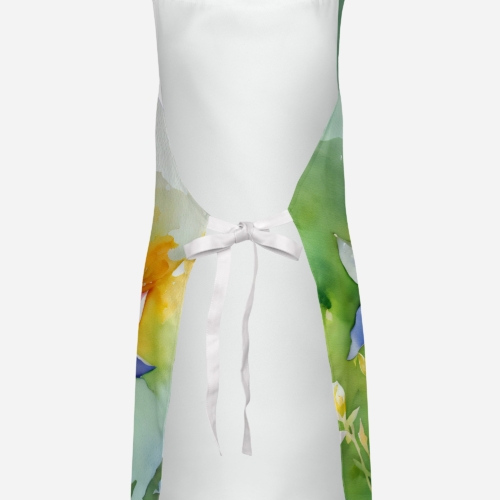 Apron featuring breed specific Colorado Rocky Mountain Columbine artwork. Elevate your cooking, baking, and grilling experiences with our versatile Kitchen or BBQ Apron. This Bib Style apron isn’t just limited to culinary activities – it also serves as an excellent baking apron, artist apron, server apron, gardening apron, or even a dog grooming apron. The apron showcases vibrant full-color artwork contributed by one of our talented artists, bringing a dash of style to your daily tasks. With dimensions of approximately 27″W x 30″H, it provides ample coverage to protect your clothing from spills and splashes. Our apron is meticulously crafted from 100% Ultra Spun Polyester, known for its durability and lightweight nature. The apron comes with white tie straps, ensuring a comfortable and adjustable fit for all. It’s a perfect choice for kitchen apron enthusiasts, whether you are a woman or a man. Designed for easy maintenance, this apron is fully machine washable. The quick-drying polyester material actively reduces staining, keeping your apron looking fresh and new for longer. Our beautifully designed apron isn’t just a functional kitchen accessory – it’s a fashion statement in the culinary world!