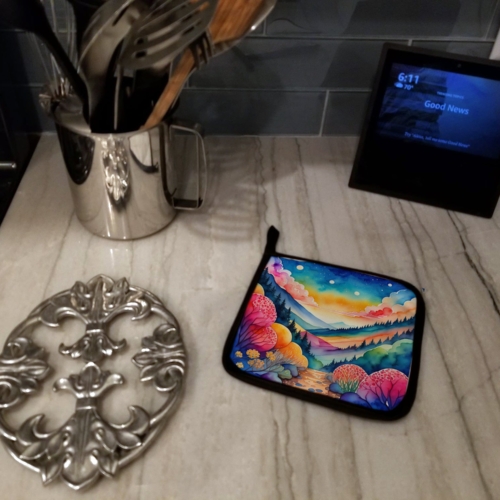 Pair of Pot Holders featuring breed specific Brunia artwork. A Pair of Pot Holders to match your kitchen decor. Made in the USA these are thick and functional. Full color artwork decorates the front polyester fabric of the hot pad and accented by a black trim. Use these at as a trivet for your Thanksgiving or Christmas tablescape. Filled with insulated fabric and quilted for durability. These colorful pot holders will make a great gift for your favorite home cook or executive chef. Each pot holder measures approximately 7 1/2 inches by 7 1/2 inches. A hanging tab is included.