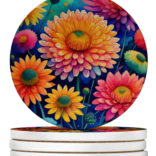 Colorful Chrysanthemums Large Sandstone Coasters Pack of 4