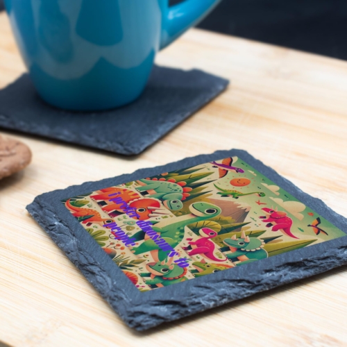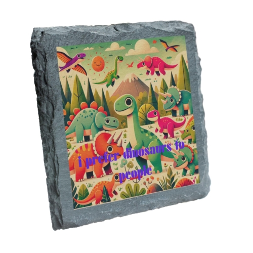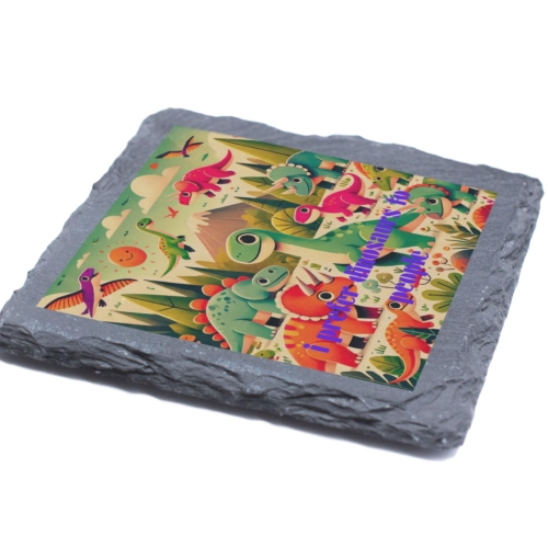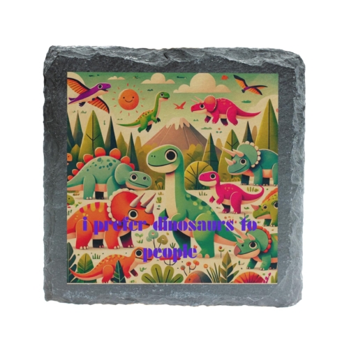 Colorful Dinosaur Slate Coaster – Dinosaurs for Everyone Fun Design (slco-kf25-dinopplkvd)