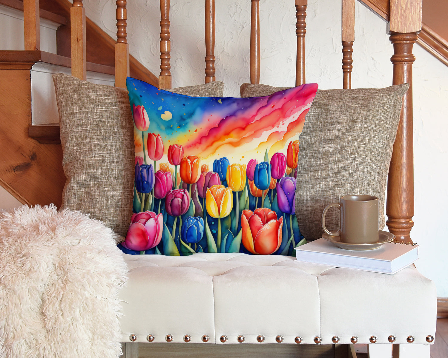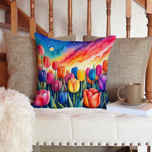 Throw Pillow featuring breed specific Tulips artwork. Add a touch of vibrancy and comfort to your outdoor seating with Caroline’s Treasures Fabric Decorative Pillow. Measuring approximately 14 inches by 14 inches, this outdoor pillow is crafted to elevate the appeal of your patio furniture, infusing it with vivid color and artistic flair. The pillow includes a 100% Polyester Fabric sham filled with a quality pillow form to provide superior comfort. Innovatively made from our brand new material, specifically woven for its water resistance, this pillow is designed for durability. The soft canvas fabric offers versatility in use, fit for your indoor couch or your outdoor patio, porch, or veranda. The fabric is dyed with colorfast dyes built for resilience against weather conditions, ensuring the pillow retains its beauty over time. Constructed by sewing three fabric pieces to create a sham, the polyester insert is then nestled inside to form the pillow, resulting in an overstuffed pillow that maintains its shape. Both the sham and the pillow insert are proudly made in the United States. As the pillows are handcrafted, there may be minor variations in size, further enhancing their unique charm. Experience comfort in style with Caroline’s Treasures Fabric Decorative Pillow.