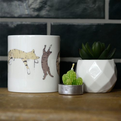 Made from Fine Bone China and hand decorated in the UK, this a mug lovely to have your cuppa from at any time of the day. With beautiful illustrations by Rachel Dimbleby, the cat designs flow around the mug.